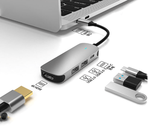 Hub Multipuerto 4 en 1 en aluminio, de 10.5 x 4.1 x 1.6 cmt