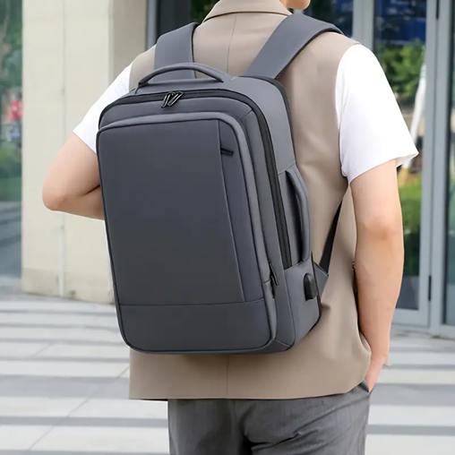 Amplio bolsillo principal para computador, gran variedad de bolsillos.