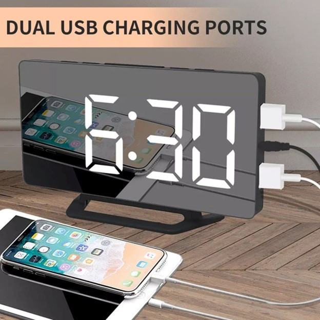Espejo para Maquillaje con Reloj, Alarma y 2 puertos para Carga de Celular