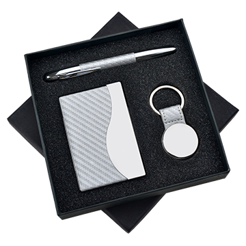 Productos metálicos / Sets de Regalo / Set de Regalo en Caja, con Portatarjetas, Llavero y Boligrafo M16100 Set de Regalo en Caja, con Portatarjetas, Llavero y Boligrafo Pedido mínimo Colombia: 300 unds Otros destinos: 300 unds Cotizar Chatea con nosotros